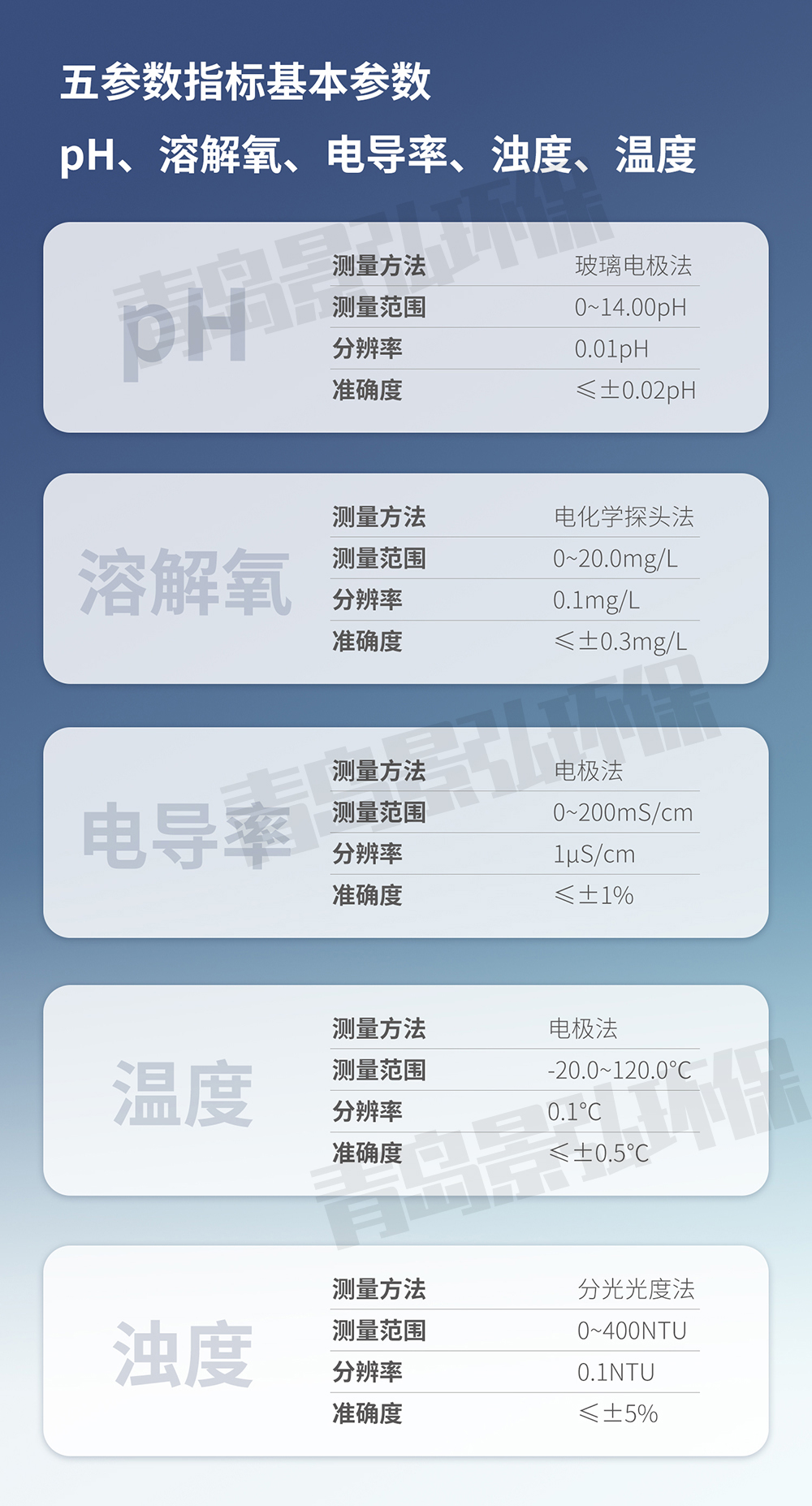 PH/溶解氧/電導(dǎo)率/溫度/濁度 |