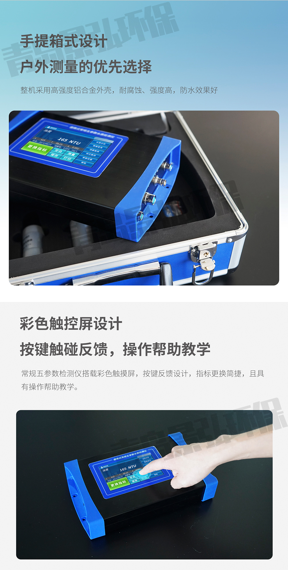 JH-TBW型便攜式水質(zhì)五參數(shù)檢測儀采用彩色觸摸屏,全電*法測量,操作簡單,使用方便,整機(jī)體積小,便于攜帶,可廣泛應(yīng)用于地表水、河湖水、市政污水、工業(yè)廢水、水產(chǎn)養(yǎng)殖、科研環(huán)保等行業(yè)。