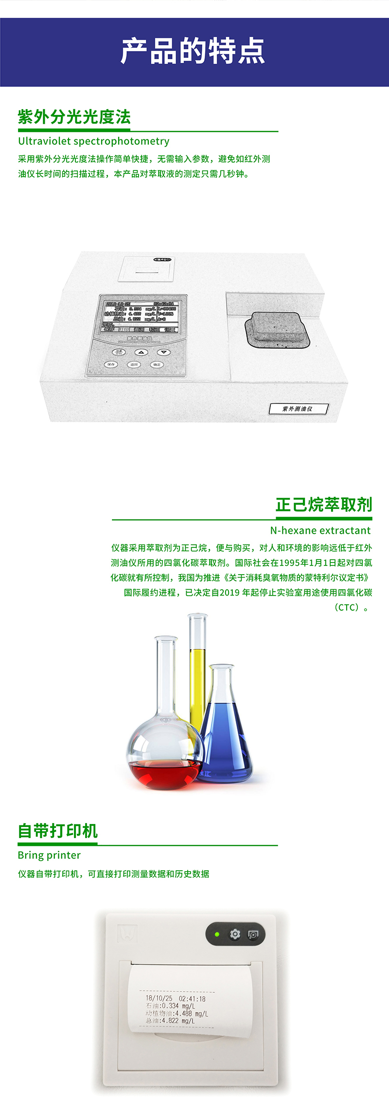 JH-U100型紫外測油儀是我公司依據(jù)國家環(huán)境監(jiān)測技術(shù)規(guī)范要求,結(jié)合我國環(huán)境污染狀況及各*環(huán)境監(jiān)測部門的需要而研發(fā)出的一種高效、環(huán)保、精準(zhǔn)、快捷的測油儀器,它用正己烷萃取劑替代紅外法中已被禁用的四氯化碳萃取劑,符合新國標(biāo)《HJ 970-2018 水質(zhì) 石油類的測定 紫外分光光度法》的要求,該產(chǎn)品操作簡單、精密度好、靈敏度高、性能穩(wěn)定,能滿足用戶的各種應(yīng)用需求。