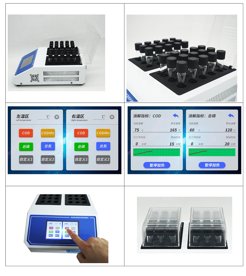 單溫區(qū)智能多參數(shù)消解儀是一種快速測定化學(xué)耗氧量的加熱裝置??蛇M(jìn)行COD、總磷、總氮等樣品消解預(yù)處理。該儀器可以自動完成恒溫計(jì)時(shí)時(shí)間,溫度恒定時(shí)間到達(dá)后儀器具有自動聲報(bào)警功能,自動關(guān)機(jī),無需人工參與。溫度漂移小,恒溫精度高。它采用PID溫控器,時(shí)間控制器、升溫速度較快,溫度緩沖小、溫度恒定均勻等特點(diǎn),操作簡便,是一種實(shí)驗(yàn)手段儀器化新產(chǎn)品。具有體積小、節(jié)水、節(jié)電、恒溫性能好等優(yōu)點(diǎn)??蓮V泛用于環(huán)保、高等院校、醫(yī)藥、衛(wèi)生、食品、自來水、化工、污水處理、造紙、石化、冶金、印染等行業(yè)。