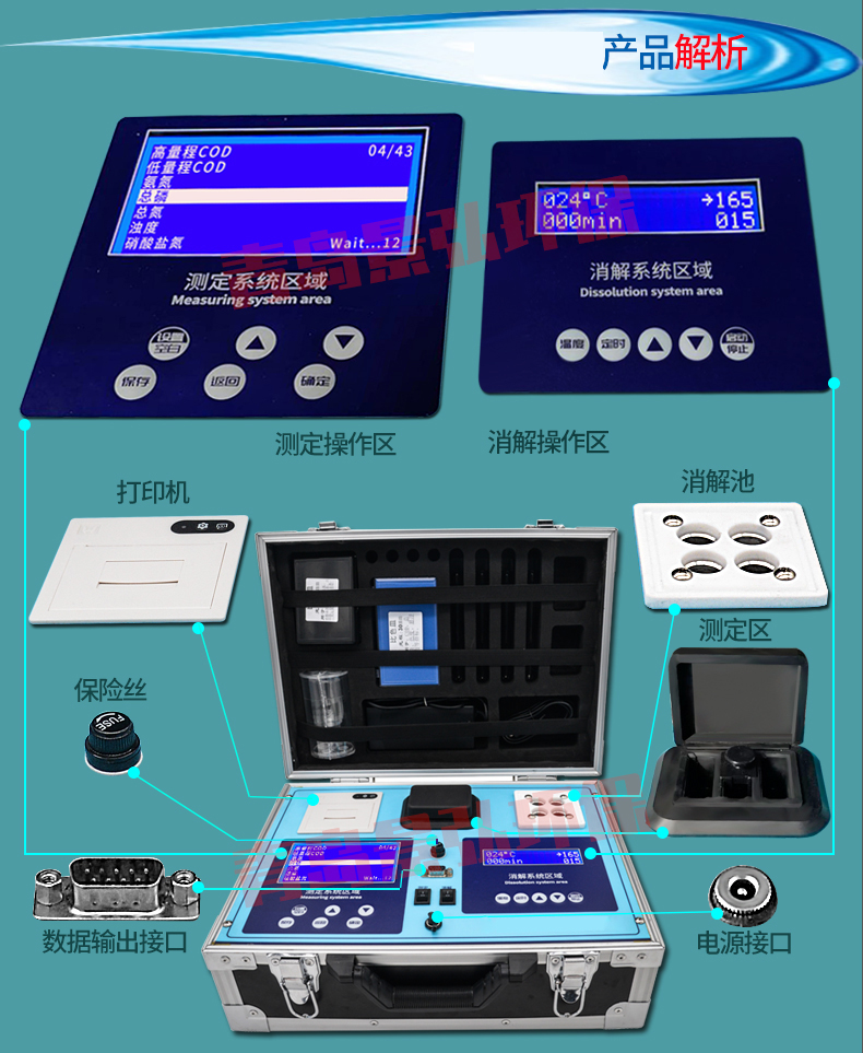 6.儀器內(nèi)置直流電源,鋰電池供電,可實(shí)現(xiàn)多批水樣加熱消解及比色測(cè)定;